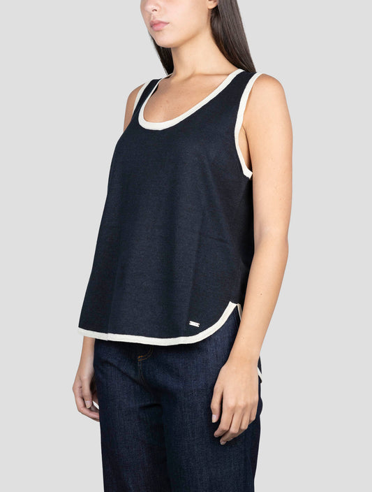 Kiton Blue Linen Tank Top - 100% Italian Handmade Women's Sleeveless