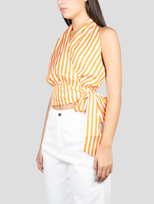 Kiton Silk Tank Top - White Orange Striped Handmade Italian