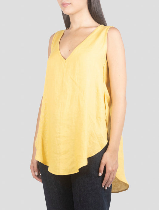 Kiton Yellow Linen Tank Top - 100% Italian Handmade Women's