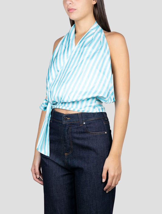 Kiton Silk Tank Top - Light Blue White Striped Sleeveless